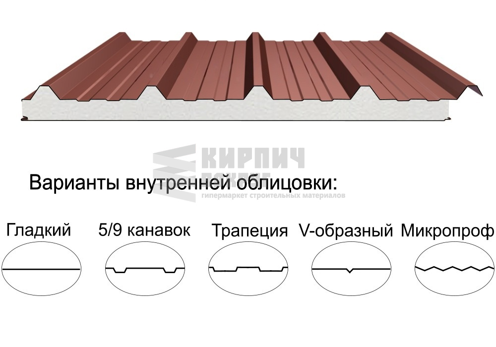 Раздел ТрёхслойныеСтроительный материал, имеющий трёхслойную структуру, состоящую из двух листов металла и слоя утеплителя между ними.