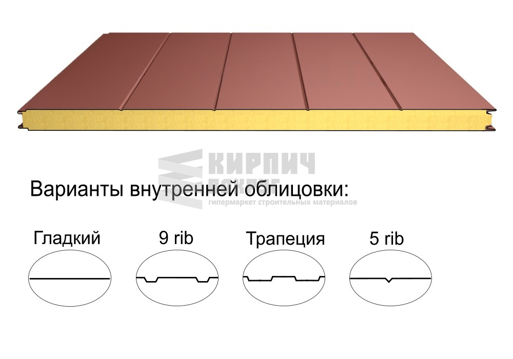 В интернет-магазине "Кирпич Вокруг" Вы можете купить Стеновая трёхслойная сэндвич-панель 5 rib 100мм 1000мм с видимым креплением минеральная вата Полиэстер Доборник в Махачкале, а наши специалисты готовы вам помочь с выбором по адресу: , или оказать консультацию по телефону: .